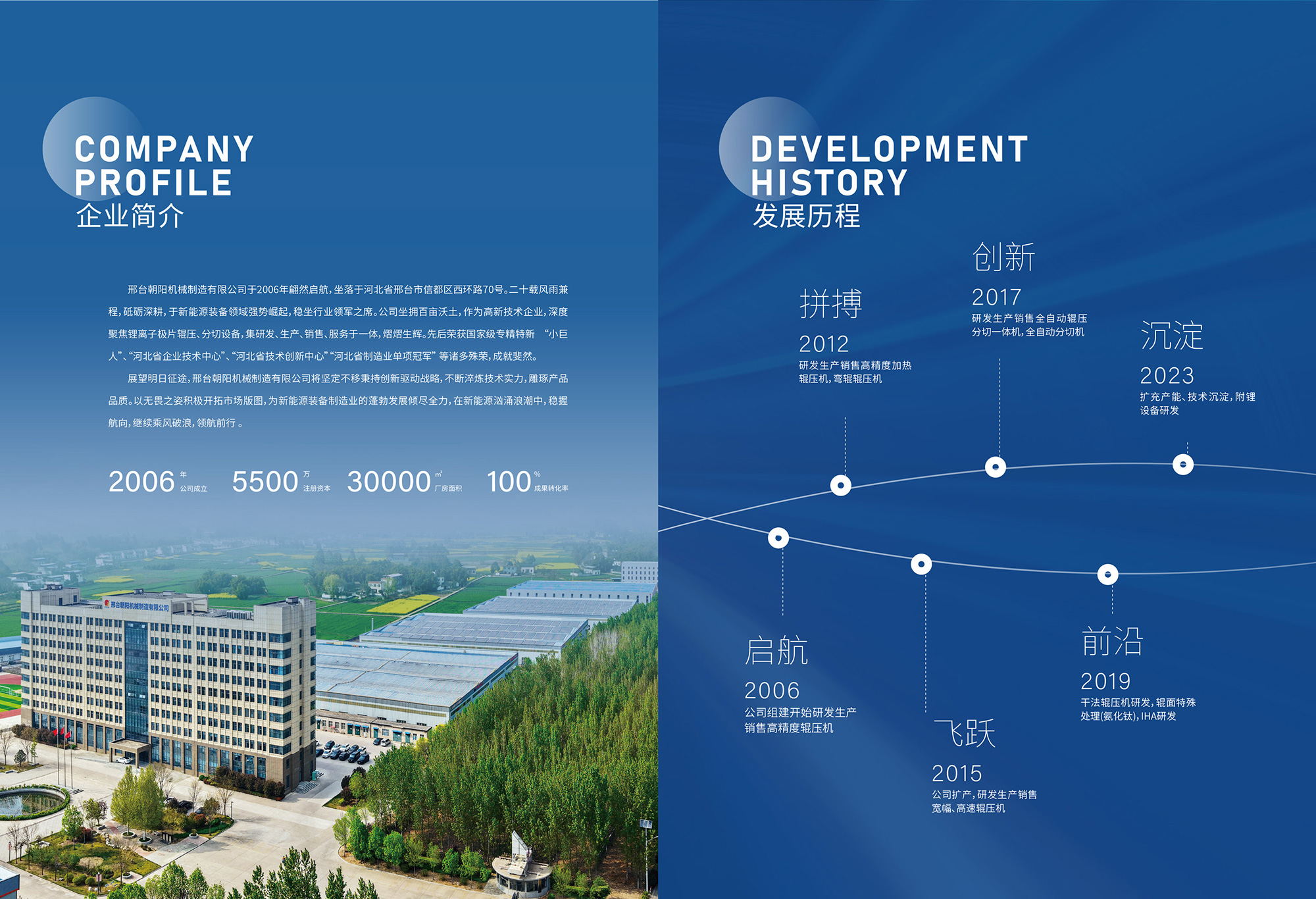 邢臺朝陽機械制造有限公司是新能源裝備領(lǐng)域的璀璨之星,位于河北省邢臺市信都區(qū)會寧鎮(zhèn)(邢臺會寧綜合物流聚集地) 70 號,自2006 年成立以來,歷經(jīng) 20 年砥礪奮進,已成長為新能源裝備領(lǐng)域的行業(yè)領(lǐng)軍者。公司占地 100 余畝,是集鋰離子電池極片... [更多>>]